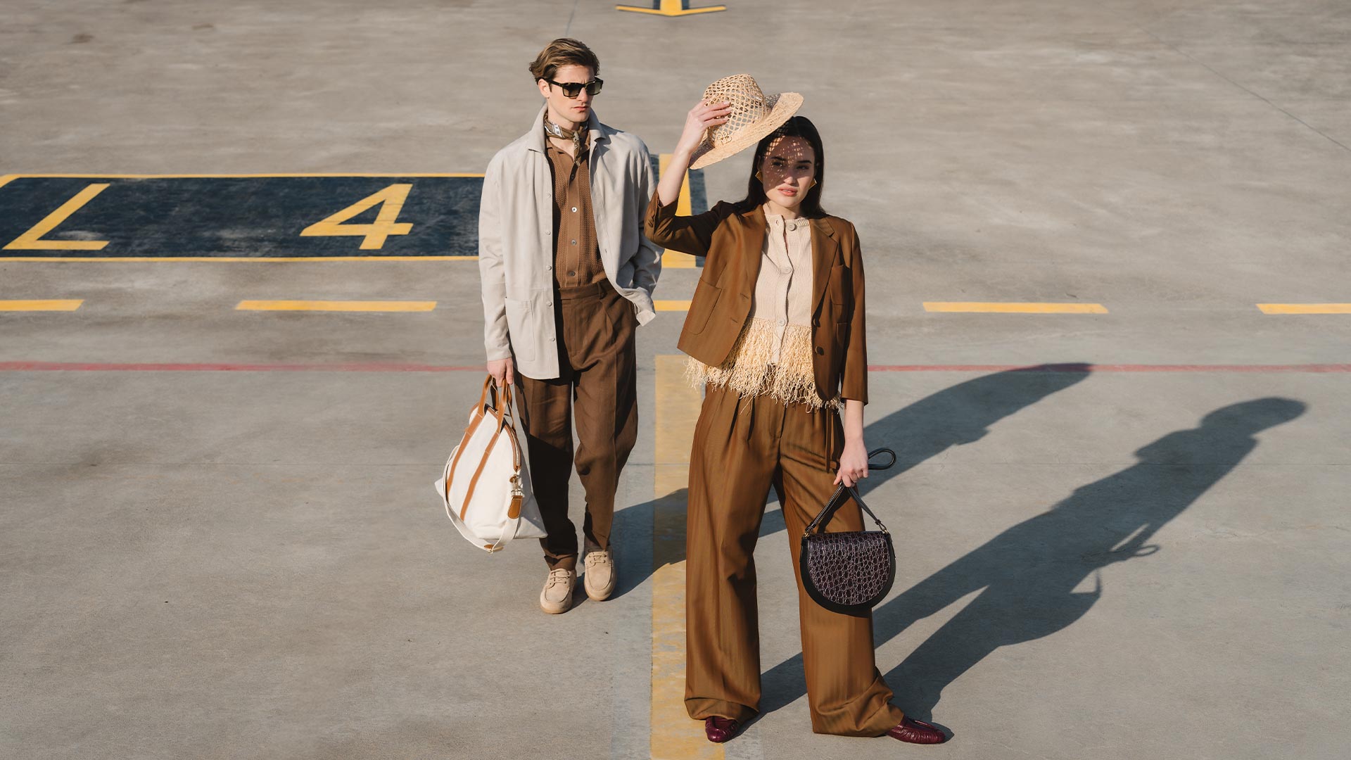 Der Herr trägt leichte Jacken, lockere Hemden, vielleicht ein Seidentuch und eine Sonnenbrille. Die Dame spielt mit Licht und Schatten, mit fließenden Stoffen und dem Charme eines großen Sonnenhutes.