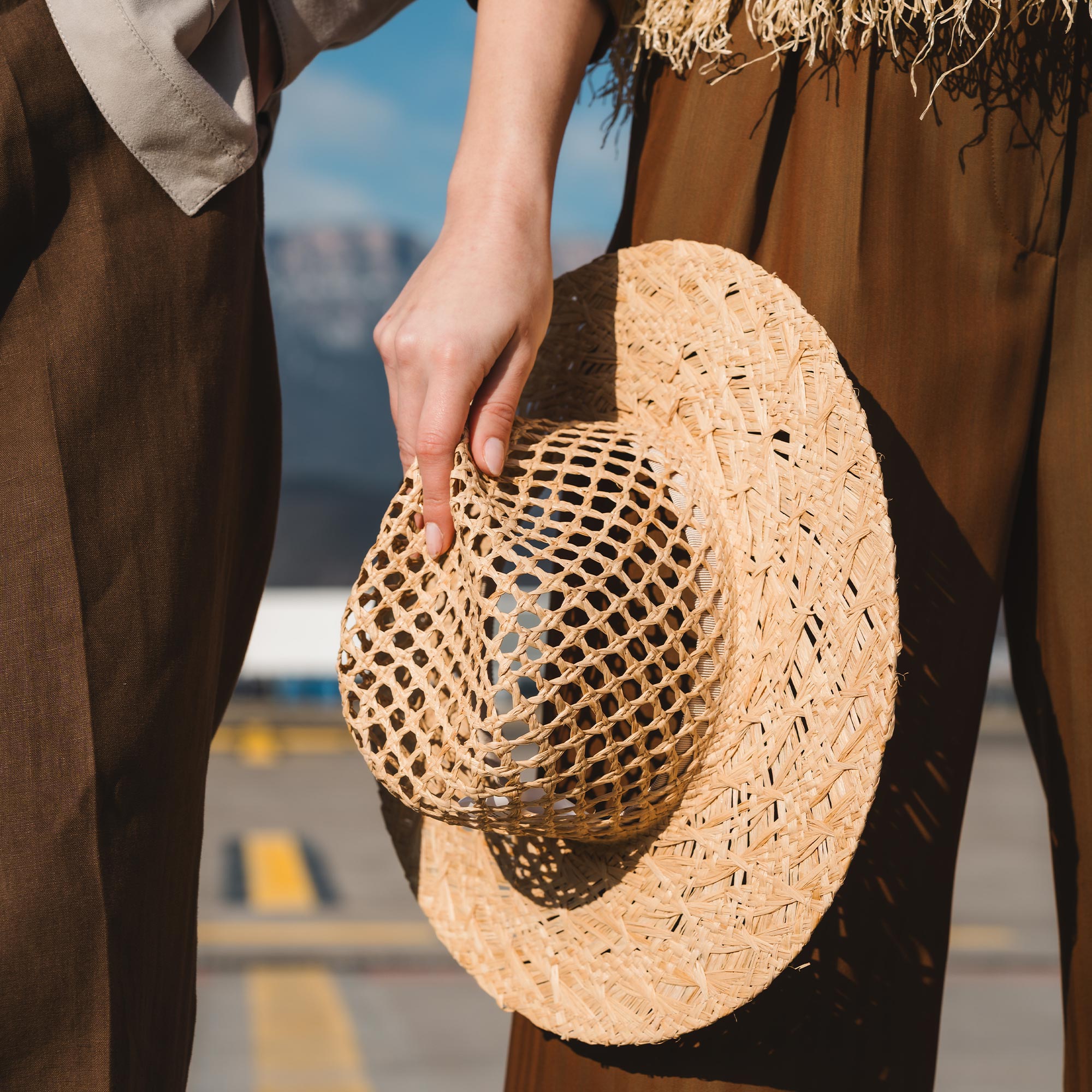 Sandfarben, warme Erdtöne und natürliche Nuancen verschmelzen zu einer Farbwelt, die an Wüste und Savanne erinnert. Leichte Stoffe, fließende Silhouetten und eine ruhige, souveräne Eleganz prägen diesen Look.
